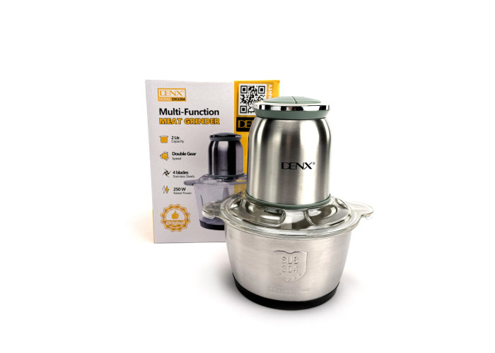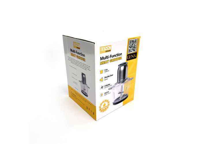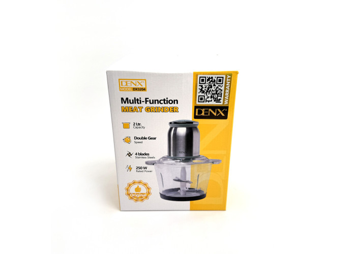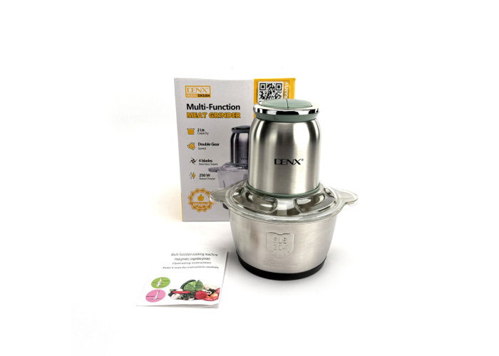 Чопер-подрібнювач DENX DX3204 — універсальний кухонний прилад для швидкого й ефективного подрібнення м'яса, овочів, фруктів, горіхів та інших продуктів. Обладнаний великою чашею об'ємом 2 л, потужним двигуном і кількома режимами роботи, що робить його незамінним помічником на кухні для приготування фаршу, пюре, соусів та інших страв.