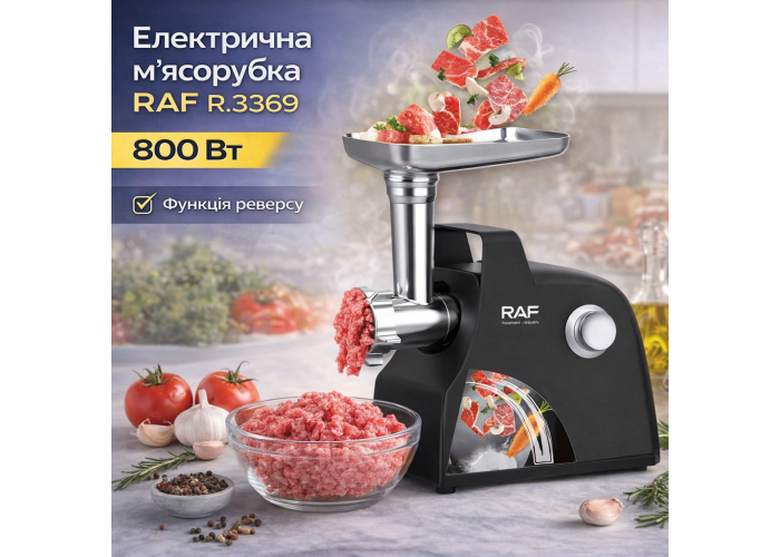 Електрична м'ясорубка з реверсом і двоступеневою конструкцією RAF R.3369 800W