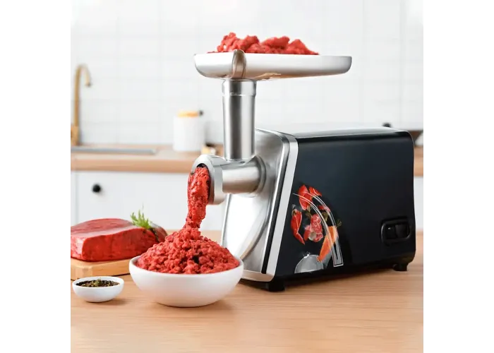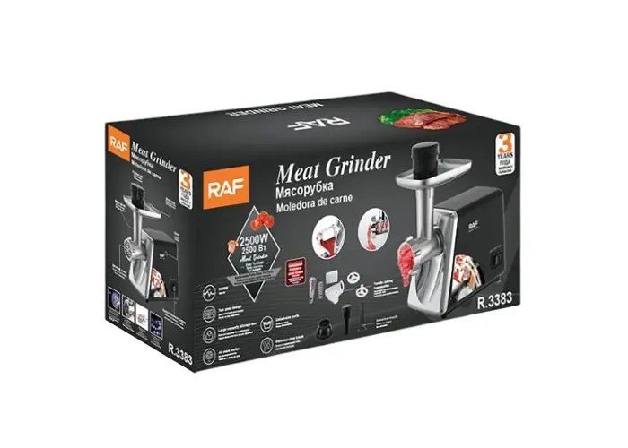 Електрична м'ясорубка RAF R.3383 — це багатофункціональний пристрій 3 в 1, яке поєднує в собі потужний подрібнювач м'яса, соковыжималку і насадки для приготування домашніх ковбас. Потужність 2500 Вт забезпечує швидке й ефективне перероблення м'яса, овочів та інших продуктів, а практичні насадки розширюють функціональність приладу. Соковичавниця робить свіжі напої з фруктів і овочів, а комплект насадок дає змогу легко формувати фарш, ковбаси та котлети в домашніх умовах. Стійка конструкція й надійні матеріали забезпечують тривалу експлуатацію, а все обладнання легко очищається після використання.