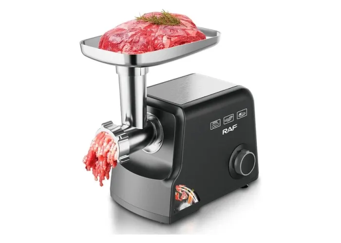 М'ясорубка електрична RAF R.3372 на 1000 Вт являє собою продумане поєднання функціональності й елегантності. Її дизайн не тільки привабливий зовні, але й забезпечує високу продуктивність завдяки міцному металевому механізму.