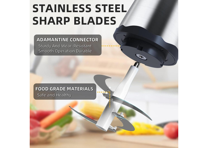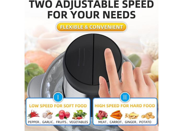Завдяки 2-швидкісному керуванню електричний подрібнювач дає змогу вільно вибирати точний контроль для отримання ідеальної текстури ваших інгредієнтів. виберіть правильну робочу швидкість, щоб слугувати вам.
