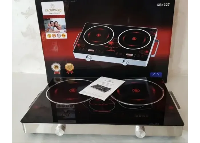 Інфрачервона двоконфоркова плита Crownberg CB-1327 у виконанні Platinum ідеально підійде для дому та дачі. На відміну від настільних індукційних плит, для приготування й розігрівання їжі, можна використовувати посуд із будь-якого термостійкого матеріалу: сталі, чавуну, алюмінію, міді, кераміки, загартованого скла тощо. Плита має сенсорне керування з РК-дисплеєм, таймером на 2 години 59 хвилин і трьома встановленими режимами роботи:
