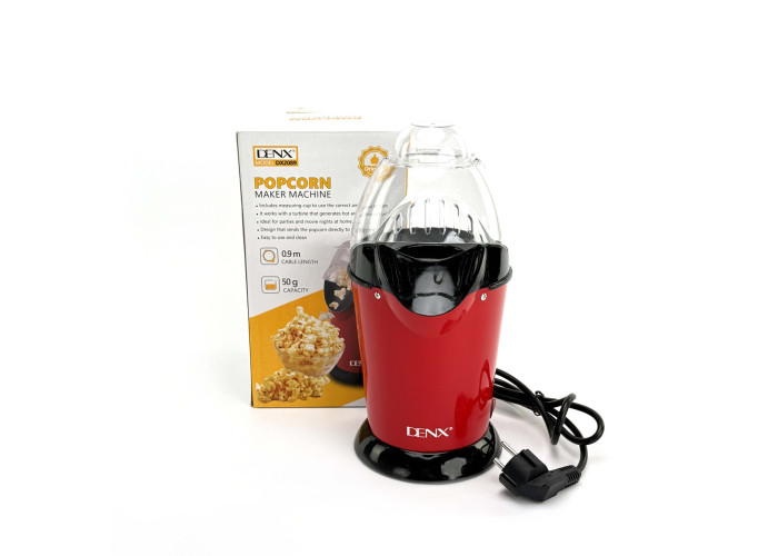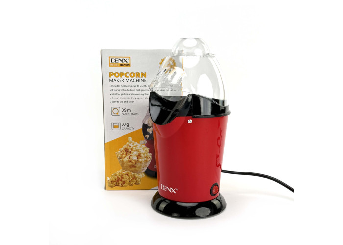 Апарат для попкорну DENX DX2089 — електричний апарат для приготування попкорну з використанням гарячого повітря, тому він не вимагає олії для приготування снеків. Такий спосіб приготування робить попкорн здоровішим і дієтичним.