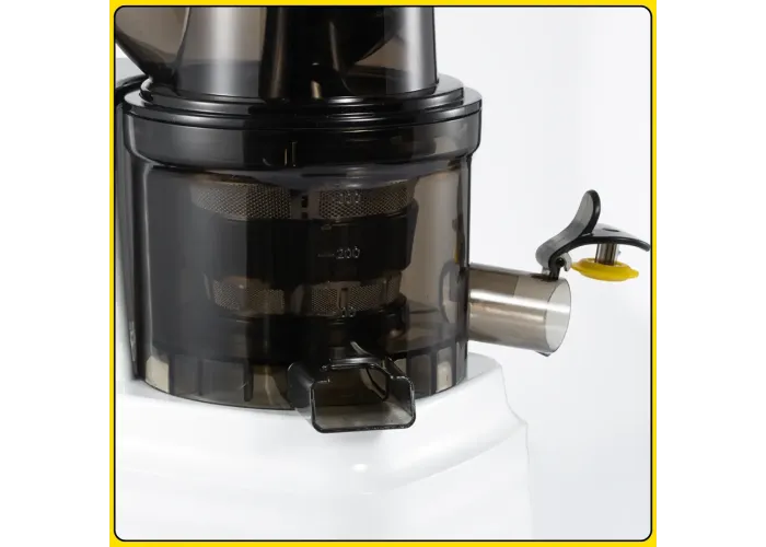 Компактний корпус із міцного пластику легко розміщується на кухні і не займає багато місця. Соковичавниця обладнана функцією реверсу для запобігання застряганню продуктів і простим кнопковим керуванням. Знімні елементи спрощують очищення після використання, а контейнер для соку об'ємом 300 мл підходить для щоденного приготування свіжих напоїв удома.