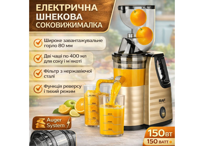 Електрична соковичавниця з контейнерами для соку та м'якоті по 400 мл RAF R.2838 150W