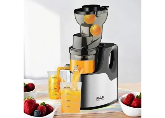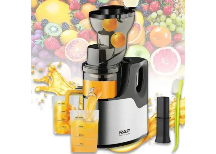 Компактні розміри та продумана конструкція роблять RAF R.2857 чудовим вибором для будь-якої кухні. Прилад запускається натисканням однієї кнопки й обладнаний системою автоматичного блокування для безпечної експлуатації. Завдяки широкій завантажувальній горловині діаметром 75 мм можна завантажувати цілі фрукти й овочі, що неабияк заощаджує час на підготовку. Корпус із комбінації неіржавкої сталі та пластику забезпечує надійність і довговічність. Вбудований резервуар соку об'ємом 400 мл і контейнер для м'якоті роблять процес приготування соку чистим і зручним.