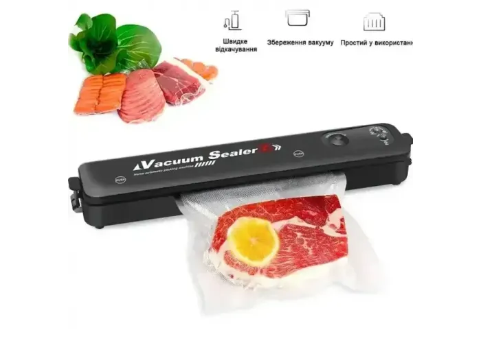 Вакууматор Vacuum Sealer — це прекрасний апарат для тих, хто піклується про здоров'я. За допомогою цього приладу Ви зможете швидко упакувати продукти у вакуумне паковання. Тривале зберігання продуктів. Це можуть бути як фрукти/овочі, так і м'ясо, птиця, риба, різні крупи та інше. Якщо після вакуумування продукти скласти в холодильник, термін їхнього зберігання може збільшитися в рази.