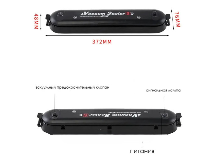 Цей девайс максимально простий у використанні. Досить укласти продукт або предмет у пакет для вакууматора, нагріти прилад, провести по краю пакета запайщиком, залишаючи другий край пакета вільним. Працює вакуумний пакувальник від мережі. Він досить компактний і не займає багато місця на кухні. Його розміри всього 373*80*98 мм.