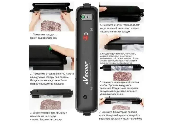 Світлодіодні індикатори легко проведуть вас через процес вакуумної герметизації. Просто натисніть кнопку вакууму та ущільнення, щоб видалити повітря.