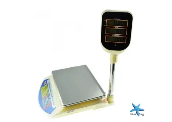 Електронні торговельні ваги Promotec PM 5052 з окремим табло на стійці (двосторонній РК-дисплей із підсвіткою покупець-продавець) межею зважування до 40 кг.