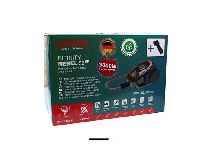 Характеристика: Пилосос з колбою об'ємом 2,5 л; Зручне зберігання і транспортування; Автоматичне намотування шнура; Обертання шланга на 360 градусів, з повітряним потоком на ручці; Індикатор наповнення пилозбірника; Зручна ручка для перенесення; Нера-фільтр; 4-ступенева система фільтрації; Блискучий корпус і ергономічний дизайн; Трубка з високоякісної неіржавкої сталі; Пластикова щітка для підлоги Комплектація: Пилосос; Телескопічна трубка; Шланг; Дві насадки; Знайомлячись зі зразками продукції, представленими на сайті, необхідно брати до уваги деякі моменти, пов'язані з точністю передавання кольору та зовнішнього вигляду продукції. Виробник залишає за собою право в однобічному порядку без повідомлення споживача вносити зміни в колірне оздоблення виробу та колір самого виробу, модель виробу.