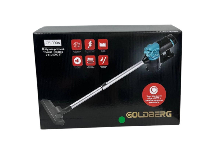 Вертикальний пилосос GOLDBERG GB-9904 - ручний дротовий пилосос GOLDBERG GB-9904 забезпечить Вам якісне прибирання будь-яких поверхонь завдяки подвійному двигуну та модульній конструкції для різних насадок.