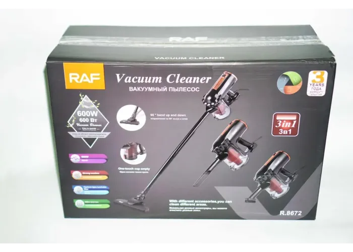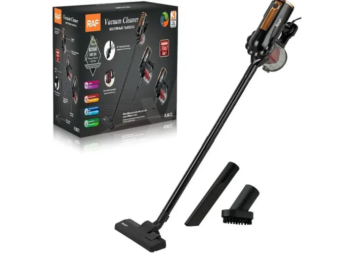 Вертикальний пилосос RAF R.8672 — ручний провідний пилосос RAF R.8672 забезпечить Вам якісне прибирання будь-яких поверхонь завдяки подвійному двигуну та модульній конструкції для різних насадок.