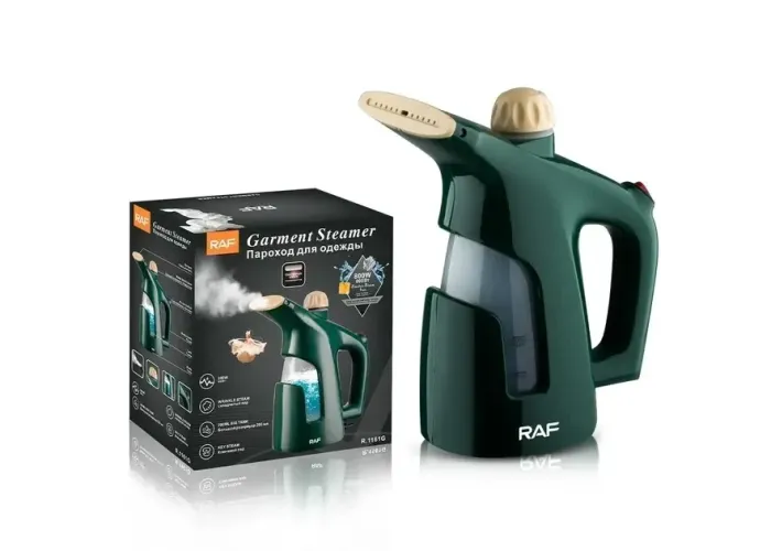 Ручний вертикальний відпарювач для одягу з мірною чашею для води на 800 Вт RAF R.1161 Зелений