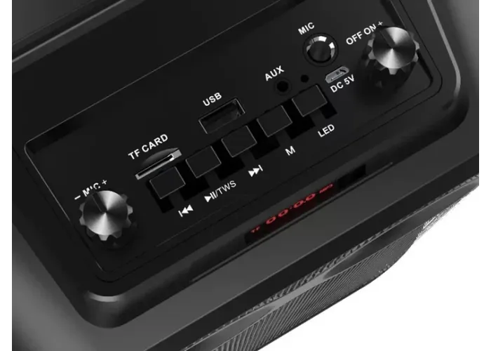 ZQS8120 — это мощная портативная акустическая система, созданная для тех, кто ценит качественный звук и яркие визуальные эффекты. Благодаря выходной мощности 20 Вт, колонка обеспечивает насыщенное и глубокое звучание, которого достаточно для домашней вечеринки или отдыха на природе. Встроенная LED подсветка динамически меняется в такт музыке, создавая атмосферу настоящего праздника. Наличие микрофона в комплекте делает эту модель идеальным выбором для караоке, а встроенный FM-приемник позволяет наслаждаться любимыми радиостанциями в любой момент.