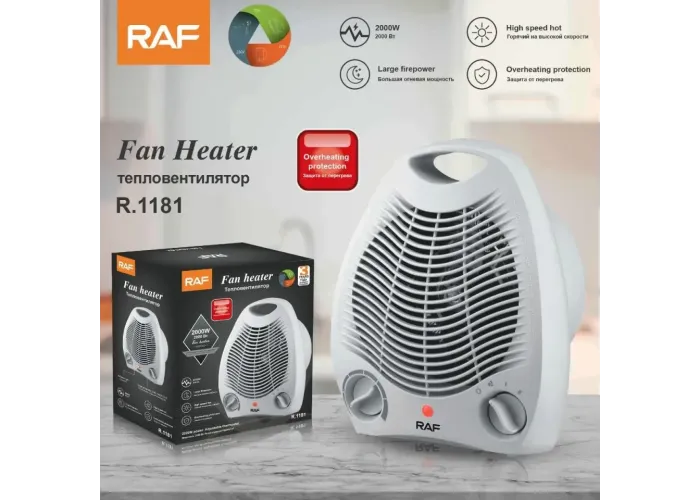 Тепловентилятор бытовой RAF R.1181 2000W имеет стильный, современный, оригинальный дизайн, и в то же время простой в эксплуатации. Благодаря внедрению новых технологий увеличена пропускаемость полезного объема воздуха, что в свою очередь способствует быстрому обогреву помещения.