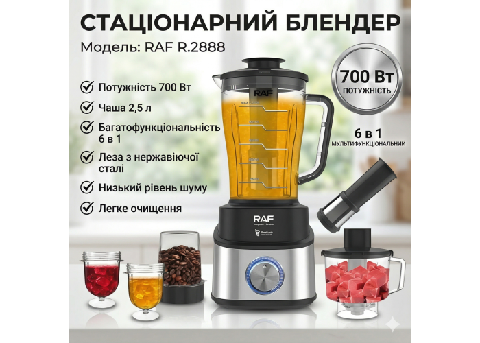Электрический стационарный блендер с механическим управлением и насадками RAF R.2888 700W