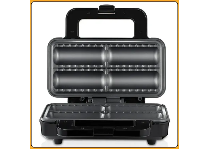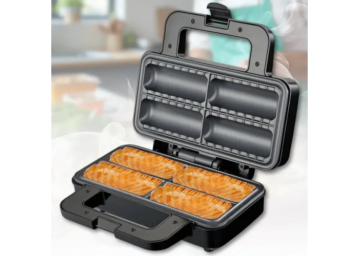Компактные размеры и легкий вес делают устройство удобным для хранения на кухне или переноски, а антипригарные пластины упрощают процесс чистки и снижают риск пригорания теста. Такой аппарат станет отличным решением для быстрого приготовления вкусных закусок дома, а также для небольших кафе или мероприятий, где важно экономить время и готовить несколько хот-догов одновременно.