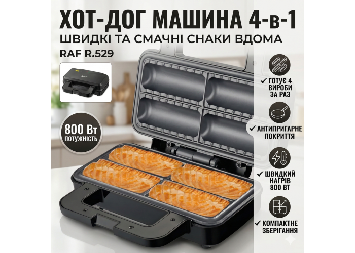 Электрический аппарат для приготовления хот-догов с антипригарными пластинами RAF R.529 800W