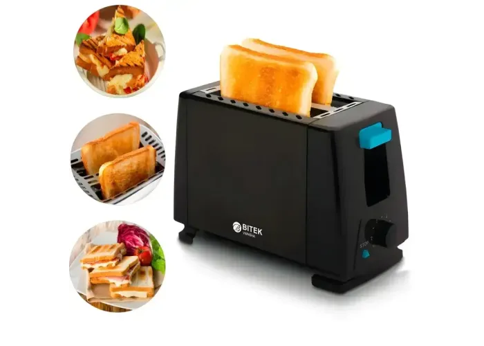 Электрический горизонтальный тостер для хлеба на 2 тоста и 1000 Вт BITEK BT-263 Черный