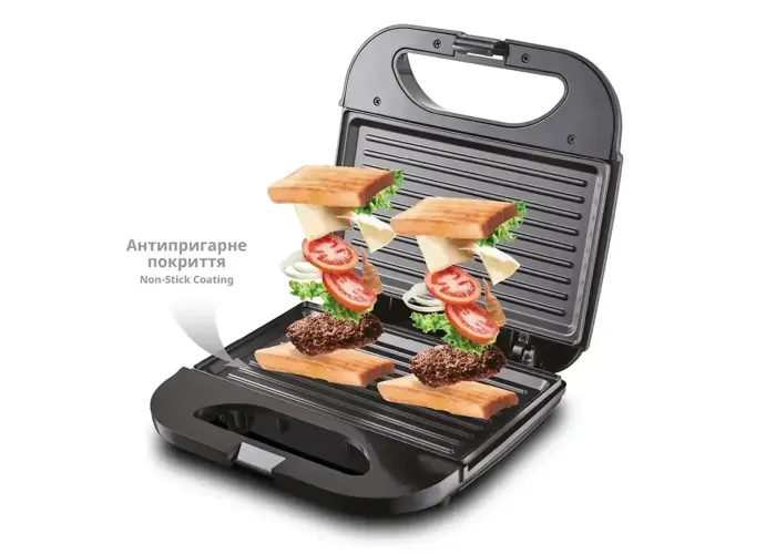 Очищение: После использования отключите сэндвичницу от сети и дайте ей остыть, затем легко очистите антипригарные поверхности.
