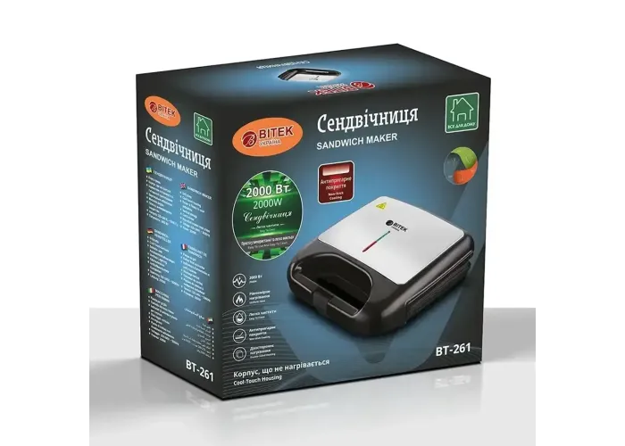 Сэндвичница на 600 мл с антипригарным покрытием на 2000 Вт BITEK BT-261