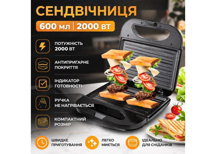 Вместимость: 600 мл позволяет готовить несколько сэндвичей одновременно.