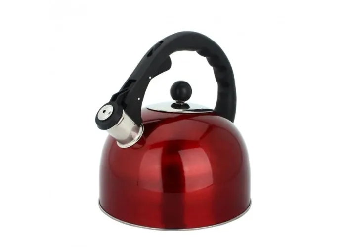 Ручка в чайнике не нагревается, она выполнена из бакелита. Чайник оснащен свистком, который всегда напомнит закипевшей воде. Он поднимается с помощью механического нажатия на специальный клапан.