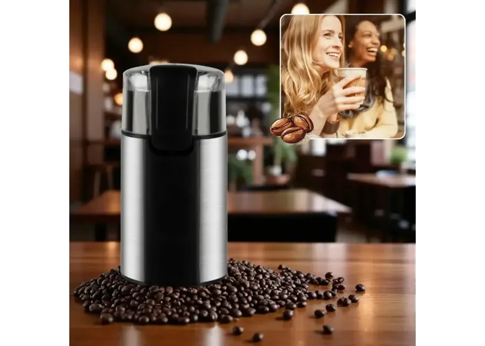 Кофемолка BITEK BT-6813 — компактный и мощный прибор, который быстро справляется с помолом кофейных зёрен, специй и круп. Благодаря мотору мощностью 600 Вт и острым лезвиям из нержавеющей стали, устройство обеспечивает равномерный и качественный помол. Кофемолка подходит для приготовления кофе различной степени помола, а также для измельчения перца, орехов, сухих трав и даже кукурузы. Её современный дизайн с корпусом из нержавеющей стали гармонично впишется в любую кухню.