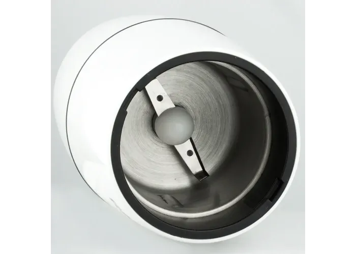 Кофемолка вмещает до 200 г зёрен, чего достаточно для нескольких чашек кофе, а высокая скорость вращения двигателя — до 28000 об/мин — обеспечивает быстрый и равномерный результат.