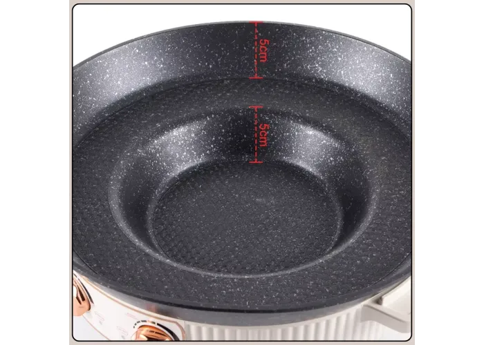 Высококачественное антипригарное покрытие предотвращает прилипание продуктов и упрощает уход за поверхностью после использования. Равномерное распределение тепла по всей рабочей зоне способствует качественной термической обработке ингредиентов. Бежевый корпус выполнен в практичном и нейтральном дизайне, а компактные размеры позволяют удобно разместить устройство на кухне.