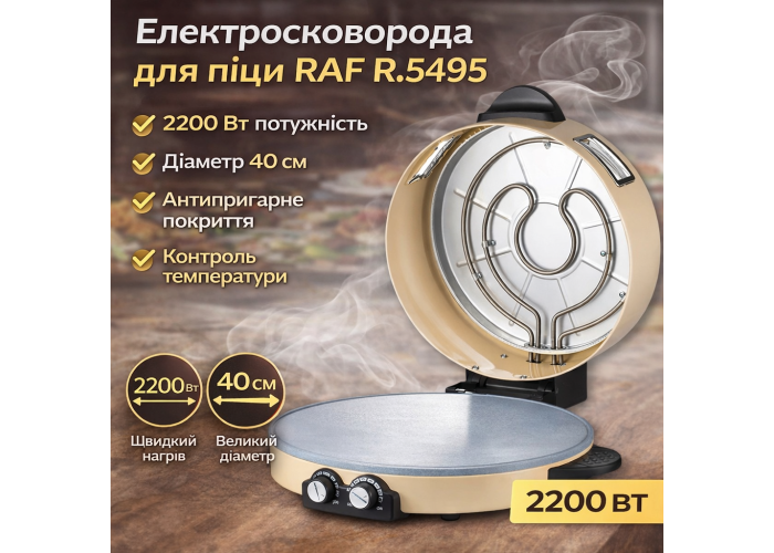 Электрическая сковорода с антипригарным покрытием для пиццы RAF R.5495 2200W
