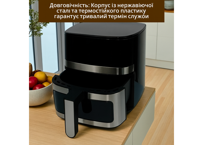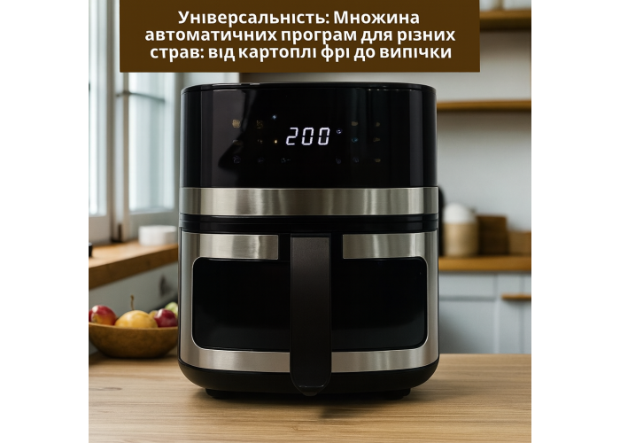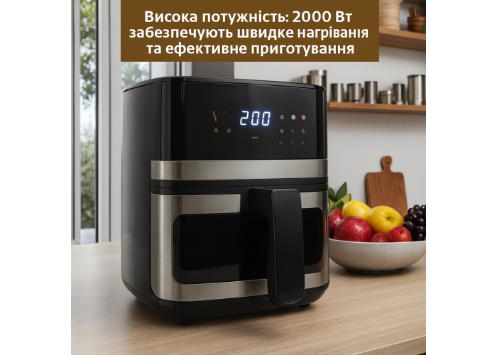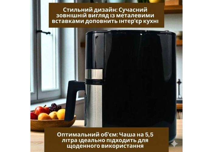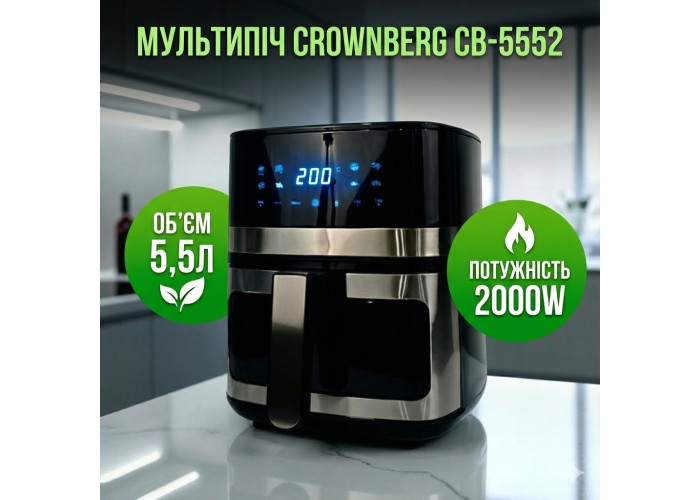 Аэрофритюрница Crownberg CB-5552 — это вместительная сенсорная мультипечь объёмом 5,5 литра, предназначенная для приготовления разнообразных блюд с минимальным количеством масла. Высокая мощность 2000 Вт и автоматические программы позволяют быстро готовить мясо, овощи, рыбу и закуски в домашних условиях.