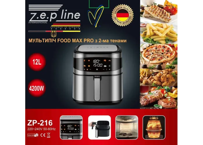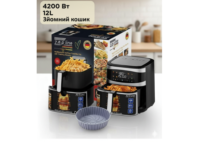 Кухонная аэрофритюрница Zepline ZP-216 на 8,8 л, 4200 Вт, мультипечь с большой чашей, фритюрница без масла и силиконовой формой