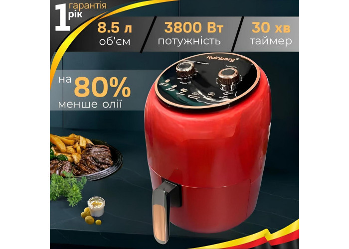Фритюрница Rainberg RB-2318 объемом 8,5 литров – отличный выбор для тех, кто любит жареную пищу, но не хочет жертвовать здоровьем. Благодаря этой модели вы с легкостью приготовите хрустящие креветки, сочный стейк и аппетитные чипсы, используя до 80% меньше жира, чем обычно.
