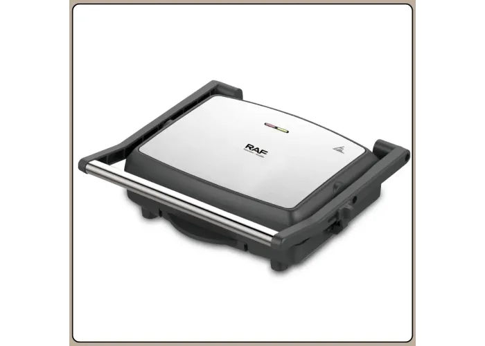Гриль оснащен прохладными ручками для безопасного использования, что делает устройство удобным для настольной установки на любой кухне. Компактные размеры 39×30×25 см и современный серебристый цвет корпуса позволяют гармонично разместить прибор в интерьере. Универсальная функциональность делает RAF R.559 отличным выбором для ежедневного использования, а также для приготовления быстрых закусок и блюд на небольшой кухне.