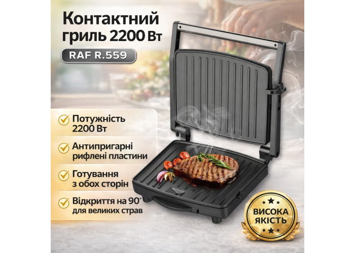 Электрический гриль с антипригарными и рифлеными пластинами RAF R.559 2200W