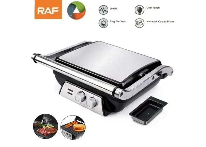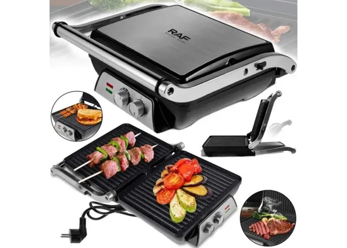 Электрогриль RAF R2684 – мобильный стационарный аппарат, который Вы можете установить в любом удобном месте, а при необходимости вынести на веранду или на улицу, туда, где есть возможность подключить его в стандартную электрическую сеть. Такой гриль пригодится в загородном доме или на даче, ведь с ним вы сможете приготовить вкуснейшие стейки, овощи, колбаски и даже шашлык в любую погоду. Антипригарное покрытие пластинок поможет вам легко и быстро протереть ее после использования. Створки гриля раскрываются на 180 градусов, что позволяет использовать их как поверхности для жарки одновременно. Есть специальный поддон, куда стекает весь сок от продуктов. Плавная регулировка температуры позволит вам подобрать оптимальный режим для любого продукта.