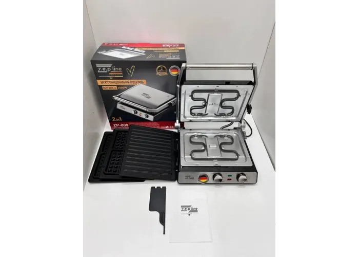 Контактный Гриль-Вафельница 2в1 Zepline ZP-809 3500W. Многофункциональный пресс-гриль со сменными пластинами.