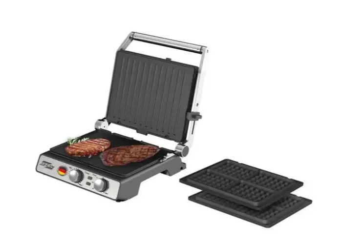 Контактный Гриль-Вафельница Zepline ZP-809 – это многофункциональное устройство, предназначенное для удовлетворения разнообразных потребностей в приготовлении пищи. Этот гриль сочетает в себе три полезные функции: гриль, вафельница и прибор для приготовления сэндвичей.