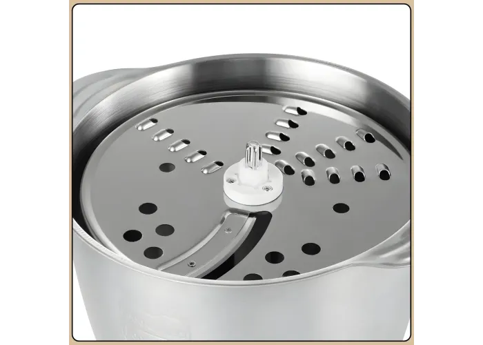Система измельчения на 360 градусов позволяет равномерно перерабатывать продукты без мертвых зон, а острые лезвия из нержавеющей стали справляются с задачами быстро и аккуратно. Корпус из нержавеющей стали отличается прочностью и долговечностью, а простая конструкция облегчает разборку и очистку после использования.
