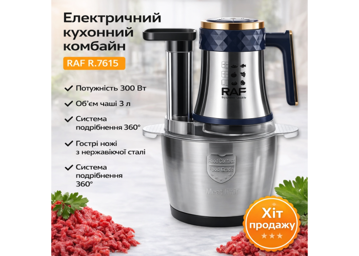 Кухонный комбайн на 3л из нержавеющей стали с системой измельчения 360° RAF R.7615 300W