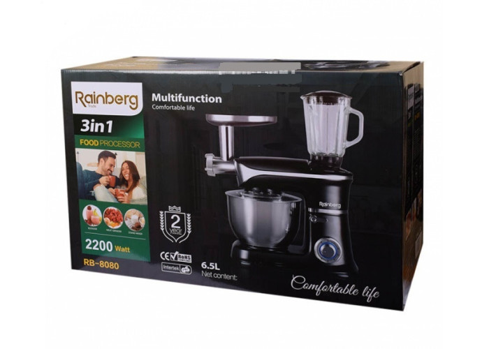 Кухонный комбайн Rainberg RB-8080 3 в 1 Тестомес, Мясорубка, Блендер (4200 Вт)