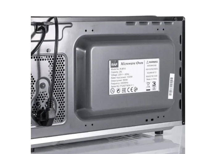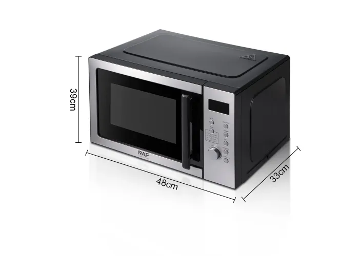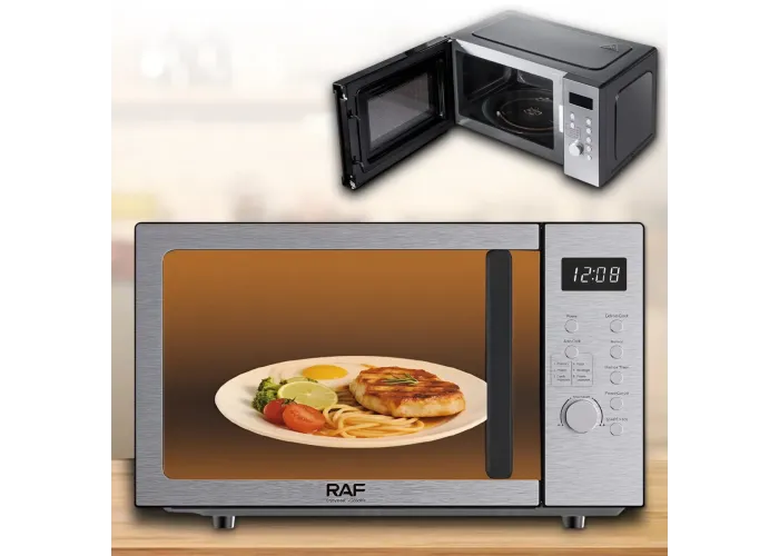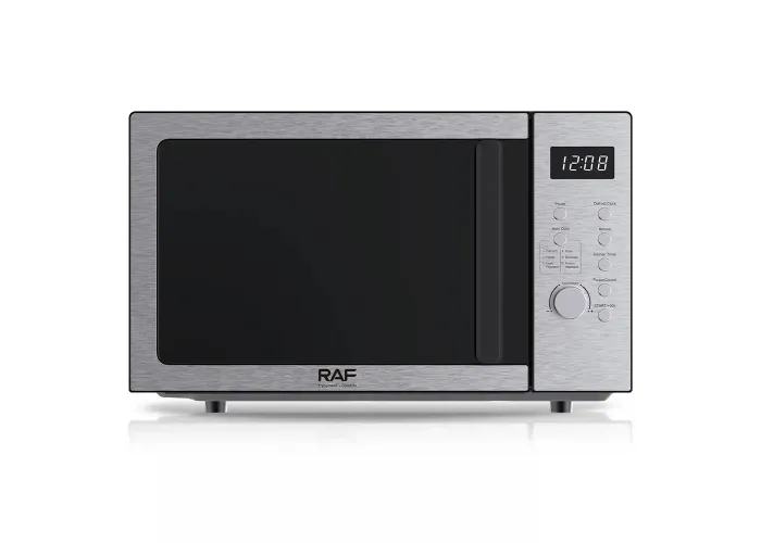 Микроволновая печь RAF R.8010 — это надёжное и функциональное устройство для ежедневного использования на кухне. Модель сочетает в себе современный дизайн в сером металлическом цвете и продуманные технические решения для комфортного приготовления, разогрева и размораживания продуктов.