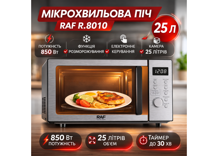 Микроволновая печь 25 л с функцией интеллектуального размораживания RAF R.8010 850W