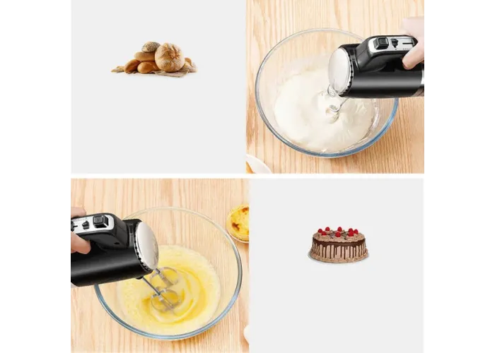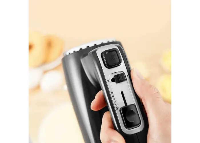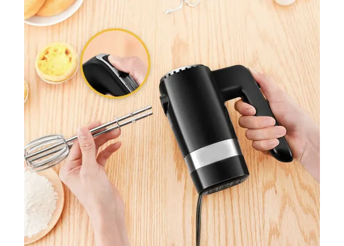 Универсальность: В комплекте с миксером идут венчики для взбивания и крюки для замеса теста, что делает его универсальным прибором для разных кулинарных задач.