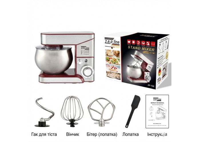 Кухонный тестомес миксер Zepline ZP-105 позволит Вам замесить тесто, приготовить десерты, взбить яйца для крема, смешать фарш и т.д.
