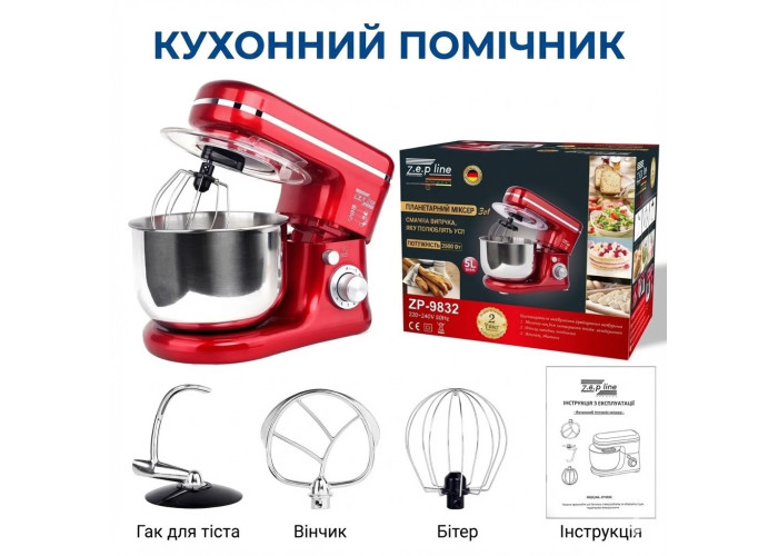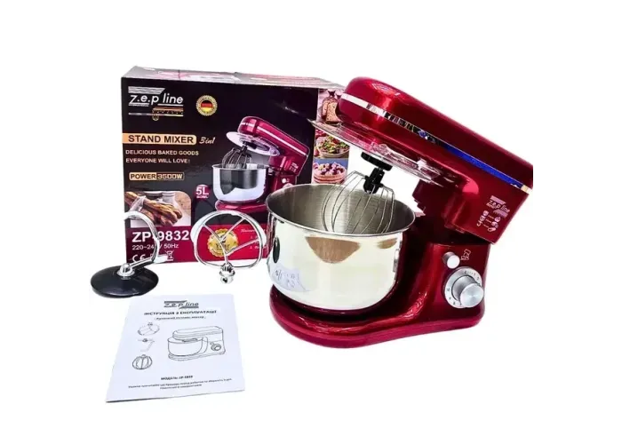 Профессиональный тестомес Zepline ZP-9832 — надёжное решение для замеса теста дома и в небольшом производстве. Чаша объёмом 5 литров и мощный двигатель 3500 Вт позволяют замешивать как плотное дрожжевое тесто, так и более нежные смеси, а корпус из нержавеющей стали в стильном красном, чёрном или белом цвете гармонично впишется в любую кухню.