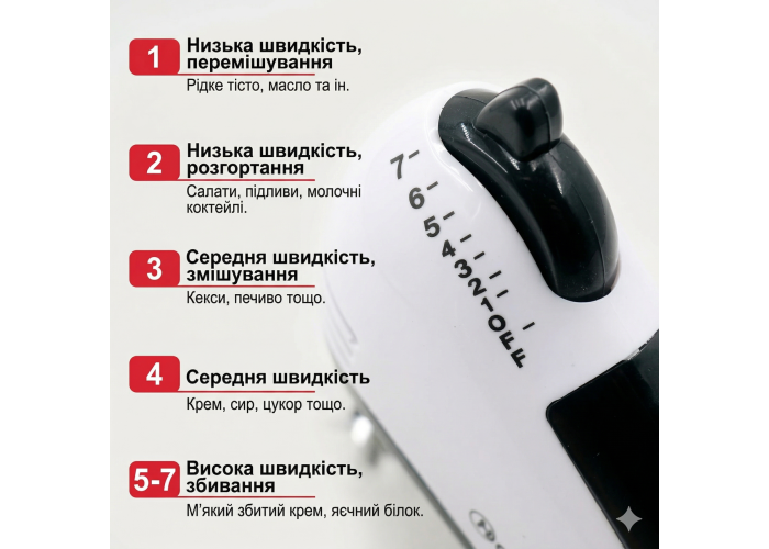 Многофункциональность: данный ручной миксер выполняет две основные функции - замес и взбивание, что позволяет использовать его для различных целей при приготовлении еды;