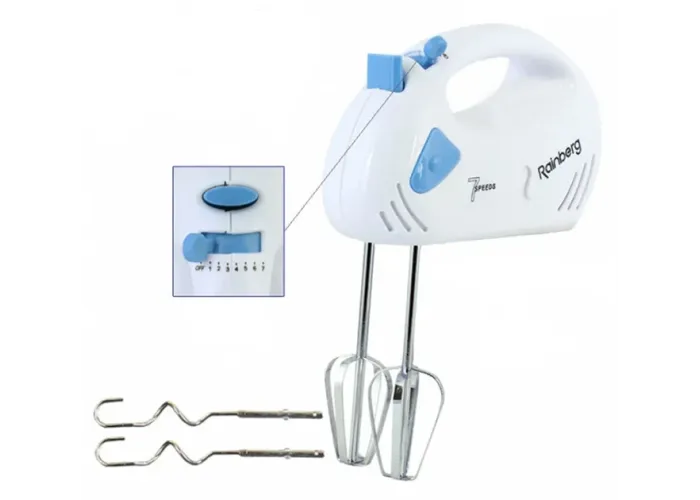 Ручной миксер Rainberg RB-1002 относится к типу достаточно компактных, но мощных моделей с мотором максимальной мощностью 300 Вт.